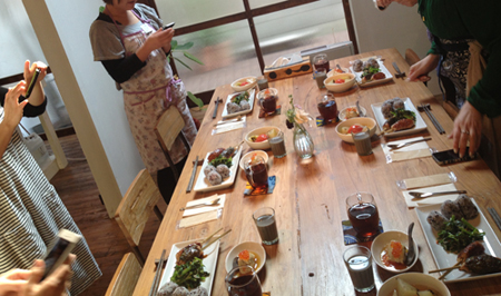途中で洗い物なども挟んで、盛りつけをして写真を撮り、12時半ごろに試食開始。