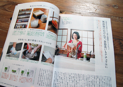 せっけんの記事と合わせ、お気に入りの喜多釜霞仙さんの器や、お取り寄せしているチャーミーさんのお野菜のことなども掲載していただいています。(p.92、93)