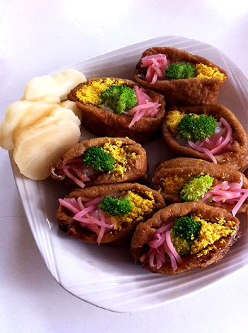 明るい色合いが春らしくて可愛らしいお稲荷さんは、とても優しい味がしました。
