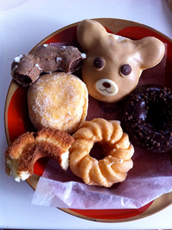あたしからの手土産はドーナツ。母がきちんとお皿に並べてくれました。