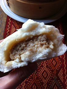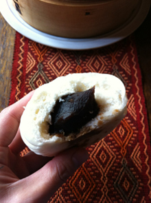 割ってみると中はこんな感じ。肉まんは上品な味わいでとっても美味しい!!