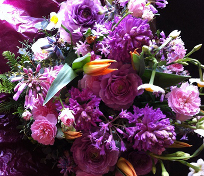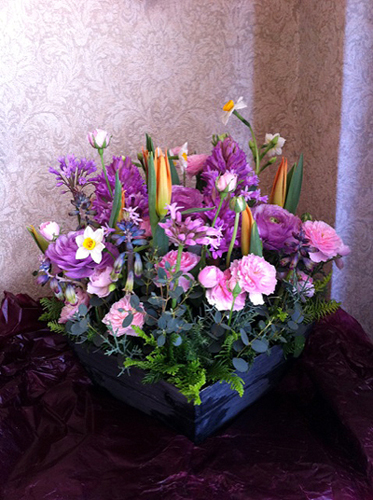 野の花を使いながら、母のすきな紫でまとめたアレンジにしてくれました。
