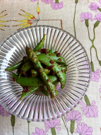 アスパラガス、モロッコインゲン、スナップエンドウ。