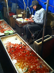一歩足を踏み入れると、ひとも露店もたくさんで、活気も熱気も物凄い!串焼きや金魚すくい、のしいか、たこ焼、焼きそば、大判焼き、お好み焼き、フルーツ飴、etc..