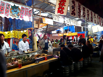 テーブルと椅子をずらりと並べた呑み屋さんもたくさん!どこもいい〜雰囲気です♪