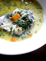 オレンジのパプリカと帆立缶、たっぷりのパセリに生クリームなどを使った優しい味のスープ。ほんのりにんにくも効いています。本当に美味しかったし、色合いもとっても奇麗!サラダにはドライトマト、トマト、ブラックオリーブなどが入っていました。ドレッシングは常備している
