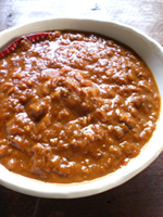 玉葱、にんにく、生姜、カエンペッパー、トマト缶、ココナツミルク、カレー粉、ガラムマサラ、カルダモン、ナツメグ、ターメリック、クミンシード等々、、我が家にあるスパイスで作ってくれました。