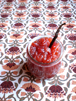 memo:アルミの鍋は酸に弱いので、琺瑯かステンレス製の鍋を使います。皮はワックスなどが気になる場合は塩をつけてこすり洗いを。皮が入る方が色は奇麗ですが、口当たりが気になる場合は剥き、剥いた皮も少し一緒に入れて煮ると淡いピンク色に仕上がります。砂糖はお好みのもので構いません。甘さは林檎の状態にもよりますが、重量の25〜30%程度で調整をします。煮るときにはバニラビーンズではなく、シナモンスティックを加えても美味しい。