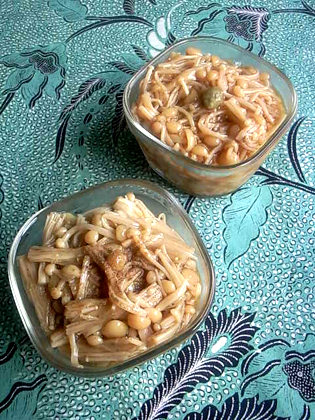 挽き肉を加えて更に炒め、調味料を出そうと冷蔵庫を開けたら、まっさきにしめじが目に飛び込んで来た。