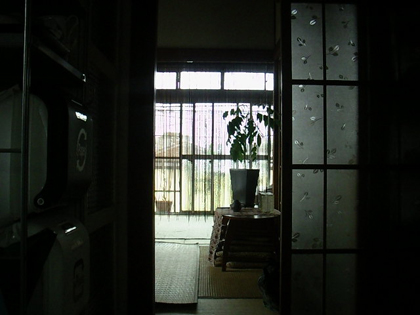 画像は我が家の台所からの光景。扉の向こうは宴スペース、くつろぎスペース、ちびベランダ。