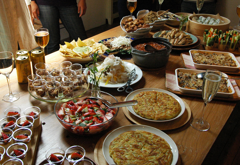 1時間前に来てくれた"お手伝い隊"の強力サポートもあり、乾杯時には15品くらいのお料理とおつまみがテーブルに並びました。チーズの盛り合わせや差し入れのおやつなども合わせ、最終的に17品くらいだったのかなと思います。