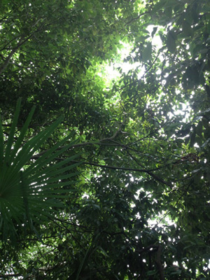 テラス席に座ったのだけど、上を見上るとこんな感じ。きもちいい!