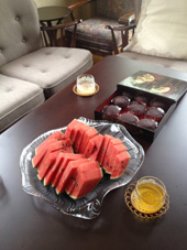 居間には母お手製の、甘さ控えめのおはぎもたくさんあり、あたしはすいかを切りました。