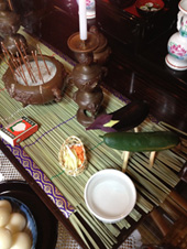 きれいにお供えがされた父のお仏壇。よくみると、父を乗せる馬と牛用に、野菜の入った小さなカゴが……