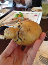 お腹もいっぱいになった頃、おもむろに高校生の甥と叔父が腕相撲を始めたり、疲れでうとうとしていた母のことを、中学生の甥がちょっかいをだしてくすぐったり、小学校にあがったばかりの姪はシェフから頂いたアンパンマンが描かれたじゃがいもを手に喜んでいたり……、14人の大所帯ということもあってとにかく賑やかでした♪