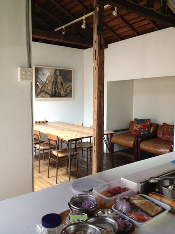 6月23日(携帯紛失中。笑)現場チーム宴の準備♪ 後ろの窓、上の写真の奥と同じ場所です〜 ^c^