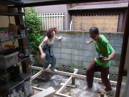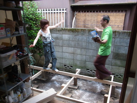 B氏力作!の、頑丈なウッドデッキ土台の上ではしゃぐ さと&チバさん♪
