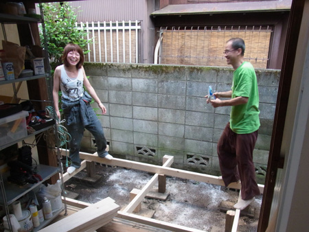 このおうちの解体からずっと力になってもらっている「チバさん」(気がつけば10年のつきあいです♪)と、そしてご存知「相棒B氏」とで、庭でせっせと作業の一日。