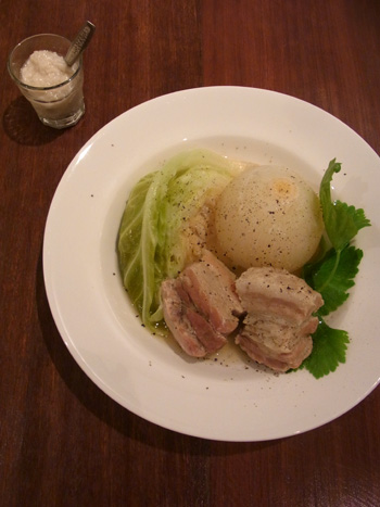 これは去年出版させて頂いた本にもレシピが載っているのだけれど、塩麹豚を適当な大きさに切ってオリーブオイルでこんがり焼いたら、あとは野菜と白ワインを加えて蒸し煮にするだけの、本当に簡単なレシピ。