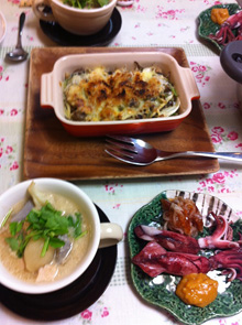 味噌を使った牡蠣のドリアに、野菜たっぷりの和風ポトフ、酢みそを添えたホタルイカ…と、手作り味噌を使ったお料理が並びました。もうね、ぜんぶ本当〜〜〜に美味しかった!!H先生、ご馳走さまでした♪