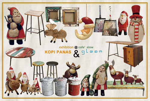 今回はクリスマスオーナメントの展示販売で、なんともいえぬ表情のサンタやトナカイが勢揃いしています。