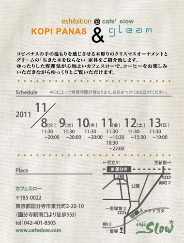 一点一点全て表情の違うグリームの家具たち。その展示会が今日から始まります!