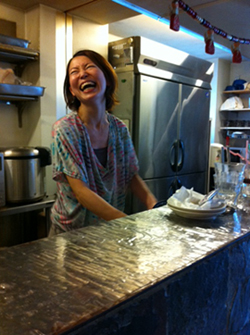 厨房乱入中のさと。青木さんと話してバカ笑い。…にしても笑い過ぎだよな。^っ^;