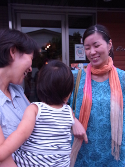 店の外にて♪あっこ&わこ、そしてくみちゃん。くみちゃんとの出逢いはこのカフェでした♡