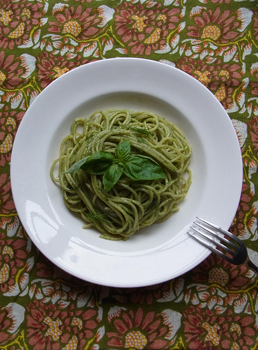 先日買ったバジルをたっぷり使い、ジェノベーゼソースを作りパスタにしました。