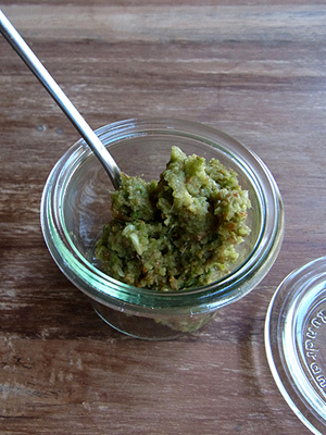 ここのところなんだか忙しくて週に一度、短い時間でしか行って無いし、今日もあまりゆっくり出来ないのだけれど、このピュレと、バジルペーストで和えたマカロニなんかを持って行こうと思います。