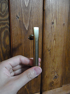 続いて取っ手。シンプルで温かみのある、真鍮の取っ手を取り付けます。