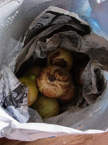 埼玉県の白子町に玉葱狩りに行ったそうで、たくさんあるからとお裾分けしてくれました。なんと前日に穫れたばかりなんだとか。うわー、うれしい!♪