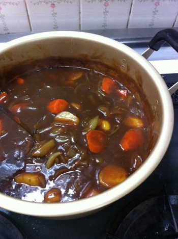 大きな鍋にたっぷりとつくり、よく聞くので、隠し味にインスタントコーヒーなんぞ入れてみました。あとはルーを入れる前の煮込みのときに、ほんのちょっぴりの醤油も入れてみたな。醤油って本当に優秀。洋食でもなんでもついついちょっぴり入れたくなります。