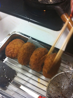 6)小麦粉、溶き卵、パン粉をまぶし、油で揚げれば完成です♪