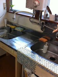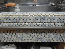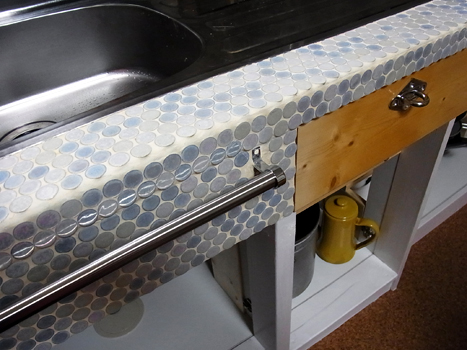 こうして出来たシンクのタイル。塗装だけは後日だけれど、これも僅か一日で完成です。