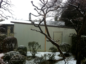 いまのおうちは一階で、ベランダの向こう側にはお隣にある大家さん宅のお庭が借景できる。雪、いっぱい積もりました。