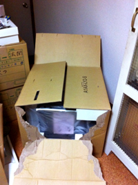 とにかくまずはみせてあげるよ!!なんて得意気に言ったものの、このヘルシオ本当に大きくて重たいのです。どうしてもとんこさんに見せたいあたしは、一旦箱を開けたものの箱の上から持ち上げて出すのは無理、と判断。