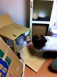 こんな感じかな?と、とりあえず段ボールを使ってイメージづくり。おお〜〜!なかなかいいぞ♪