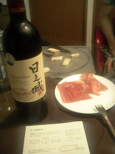 頂き物だと言う国産の赤ワインも出してくれたのだけれど、これもまた、すっごく美味しかった!!!しあわせ〜〜〜♪^q^(写真上。お薦めです♡チーズの切り方メモはくれた。笑)