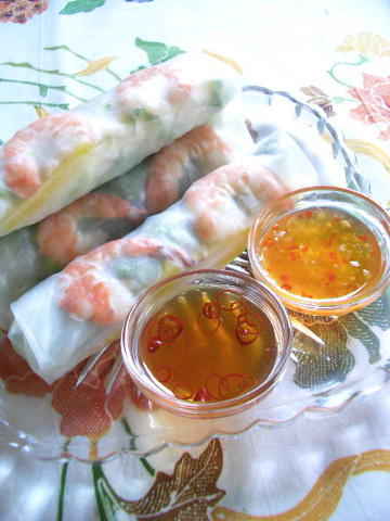 写真は今日作ったもののうち、生春巻とフォーガーの二品です。