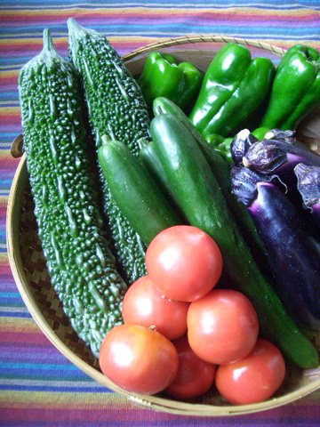 ゴーヤ、茄子、トマトやピーマンなどなど、、夏野菜をたっぷり使った献立になります。
