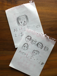 Aちゃんが書いてくれたもの♪上の絵はあたしなのです。ぎゃーかわいい!上手!!