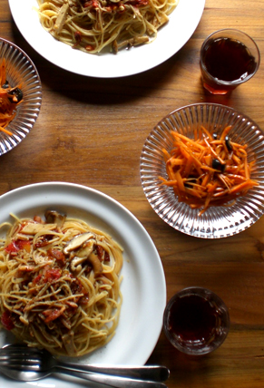 翌日はパスタをつくって一緒に食べました。