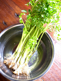 あたしは香りの強い野菜がとても好きなので、芹も本当に好み♪