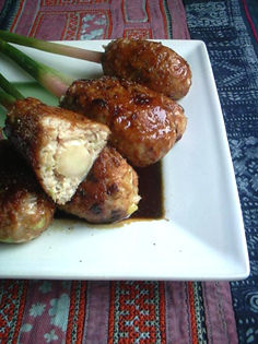 作り方:1)ボウルにつくねの材料を全て入れ、あまりこねすぎないように注意して