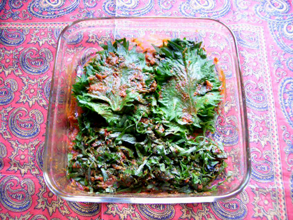 以前甘口の大葉味噌を仕込んだのだけれど、今度は辛いバージョンです。