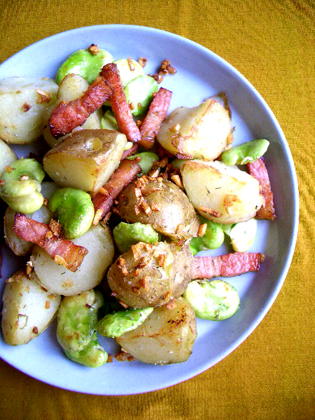 既に登場しているハーブソルトを使ってのじゃがいも炒めは、もう何年も作っている我が家の定番の一品ですが、空豆の時期には必ず空豆で作ります。