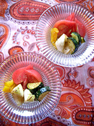 (※写真では盛りつけ時にカブとズッキーニを更に二等分に切っています)