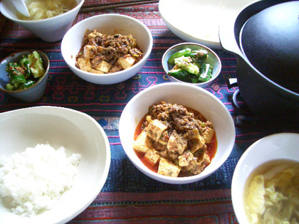 あたし達は夜は穀物は摂らずお酒を頂くのだけれど、お昼はいつもパスタやお米をしっかりと頂きます。それにしても麻婆豆腐だとついついごはんを食べ過ぎます。お腹いっぱい!