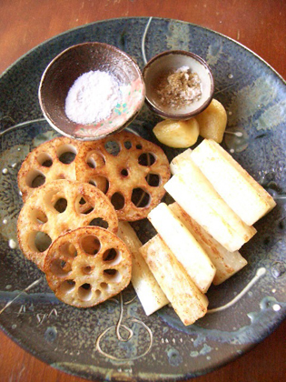 とりあえずこの花椒と岩塩を合わせたものは香りが良くて、蓮根と長芋にとても合う。